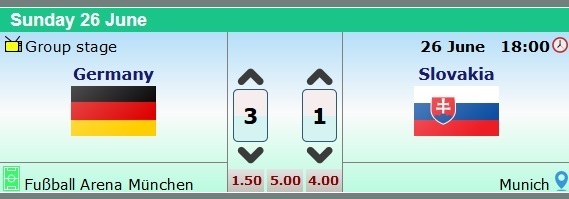 - 2nd case) Team 1 (Germany) and Team 2 (Slovakia) score the equalizer. Youreceive 4.0 points.